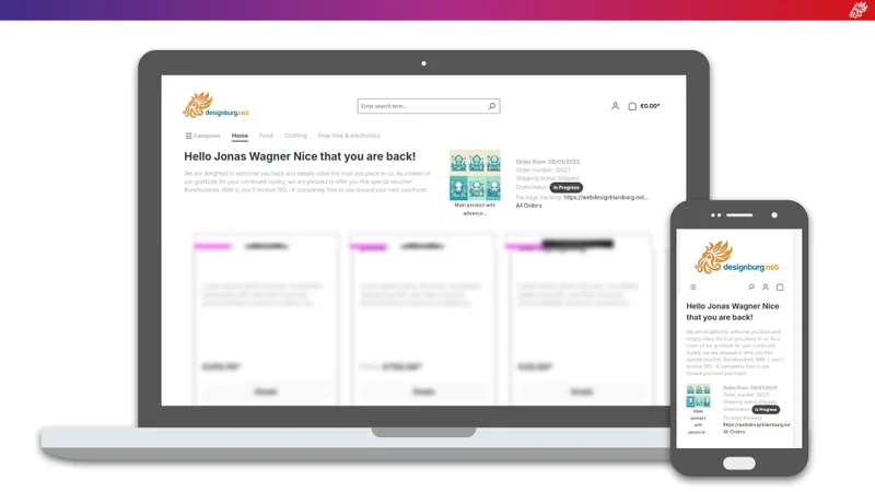 Stell dir vor: Ein Stammkunde öffnet deinen Shop – und ist bereits eingeloggt. Kein Passwort, kein Formular. Direkt auf der Startseite liest er: „Hallo Sarah, schön, dass du wieder hier bist." Darunter der aktuelle Status seiner letzten Bestellung.